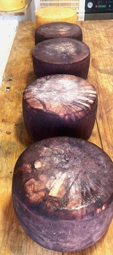 Un poco de historia: En 1917, el ejército austriaco invadió el noreste de Italia después de ganar la Batalla de Caporetto. Los soldados austriacos saquearon hogares locales en busca de alimentos, pero los residentes de Treviso y sus alrededores escondieron su queso en barricas llenas de orujo de uva, los restos de las uvas utilizadas en la producción de vino. Cuando los saqueos terminaron, los habitantes de Treviso recuperaron el queso oculto y llevaron a cabo una innovación gastronómica: el queso adquirió una gruesa corteza morada y un distintivo y agradable sabor a vino.